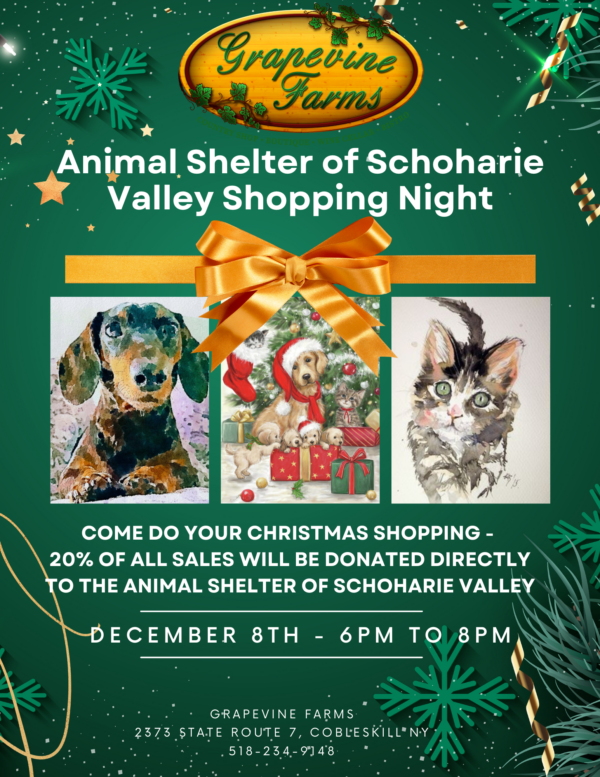20% of all sales will be donated to the Animal Shelter of Schoharie Valley!